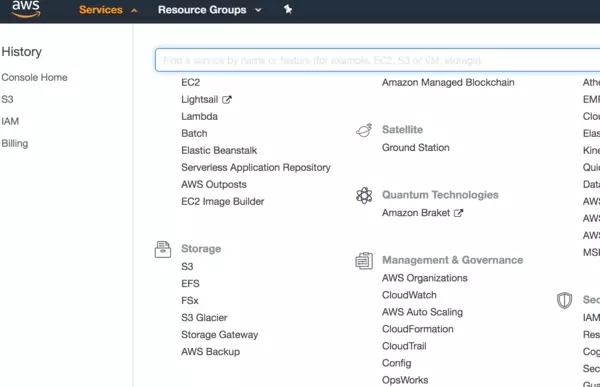 Từ hình ảnh trên như bạn thấy, bạn có thể tìm kiếm S3 hoặc nếu bạn cuộn xuống một chút, bạn sẽ có thể thấy Storage -> S3 click vào nó.