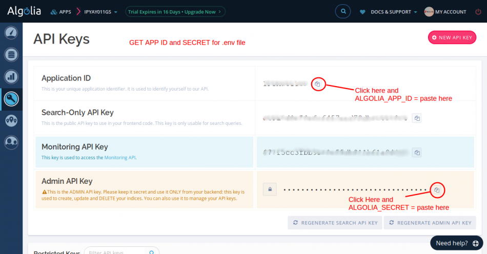 Ok, now we have to set id and secret of algolia, so first you have to create new account in algolia.com. So if you haven't account on algolia.com site then click here and create new account : algolia.com.