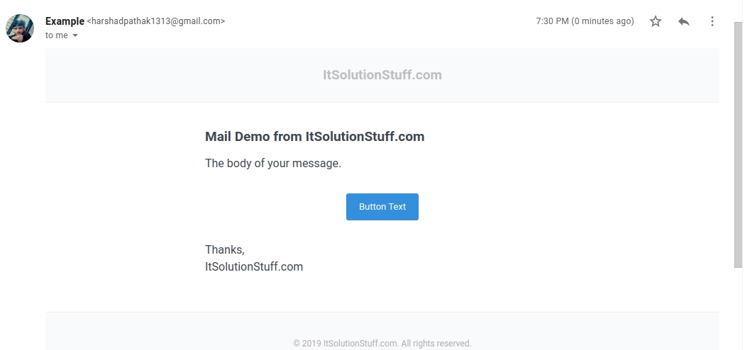http://localhost:8000/my-demo-mailYou will get email like as bellow: