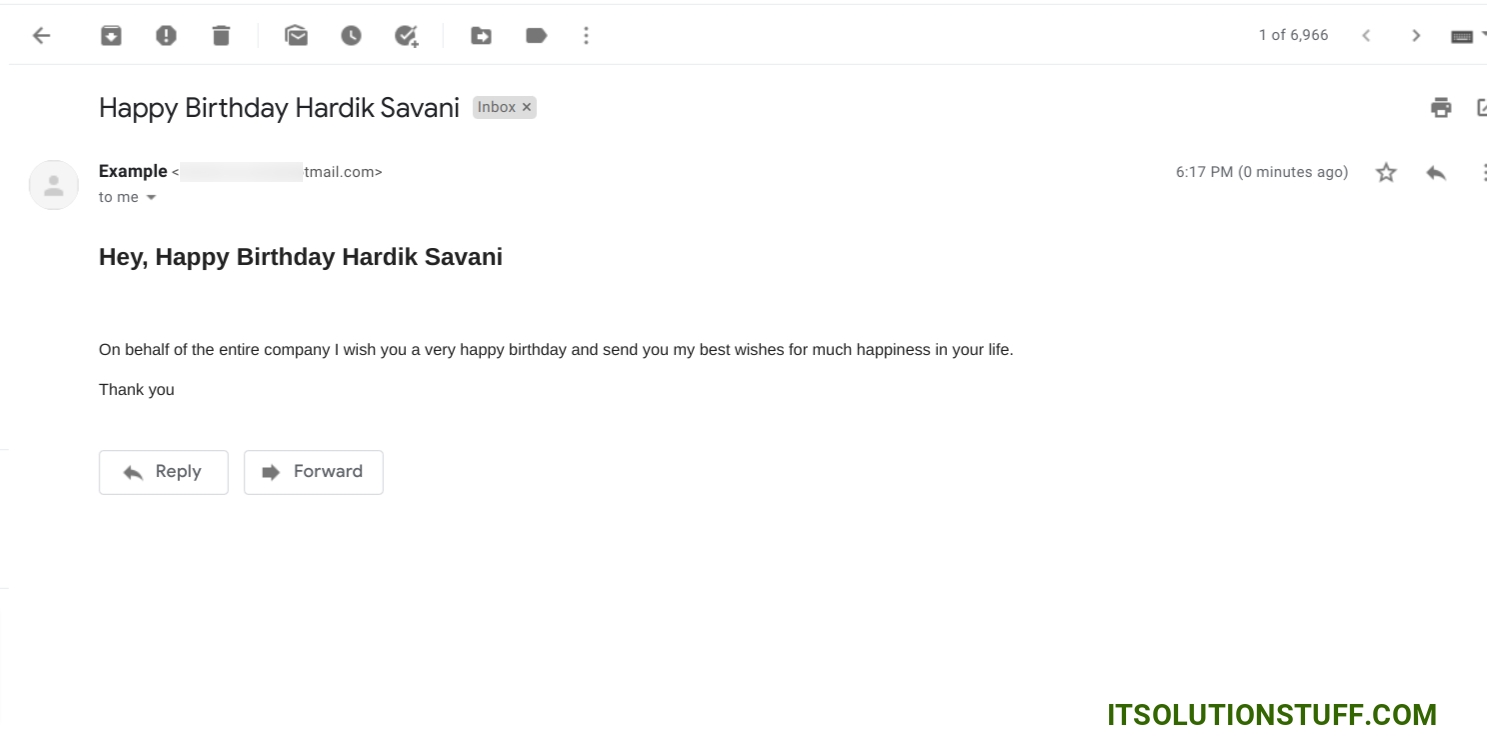 Now, you will get email birthday wish on match. you will receive email as like below: