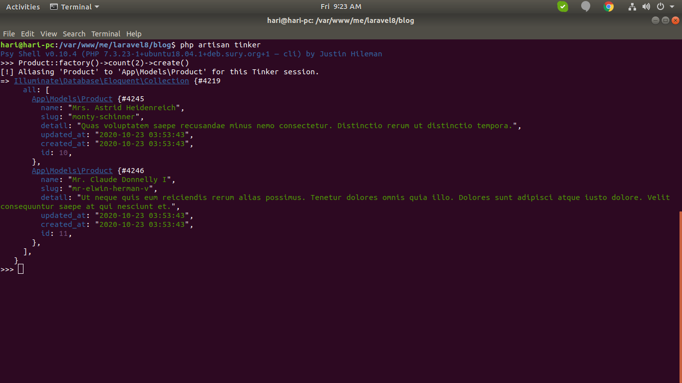 Laravel 9 Generate Test or Dummy Data using Factory Tinker (ok)