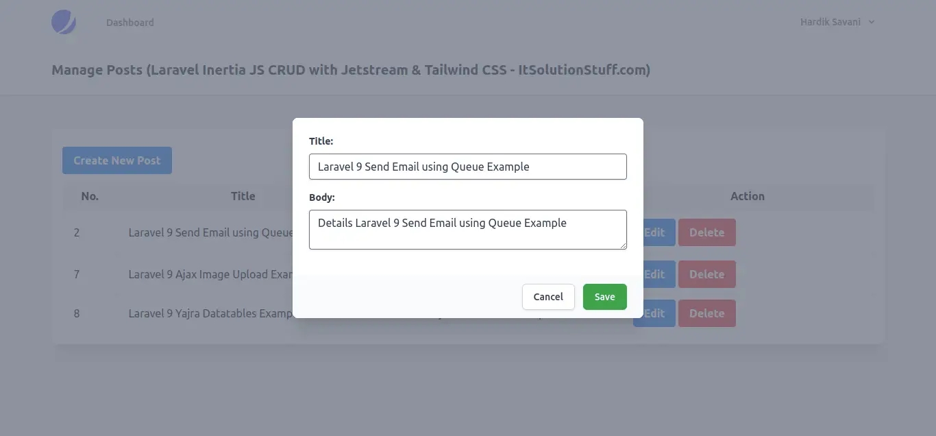 This article goes in detailed on laravel 9 inertia js crud example. We will use laravel 9 inertia js crud with jetstream & tailwind css. step by step explain laravel 9 inertia js crud with modal. you can see laravel 9 jetstream inertia js crud application example.