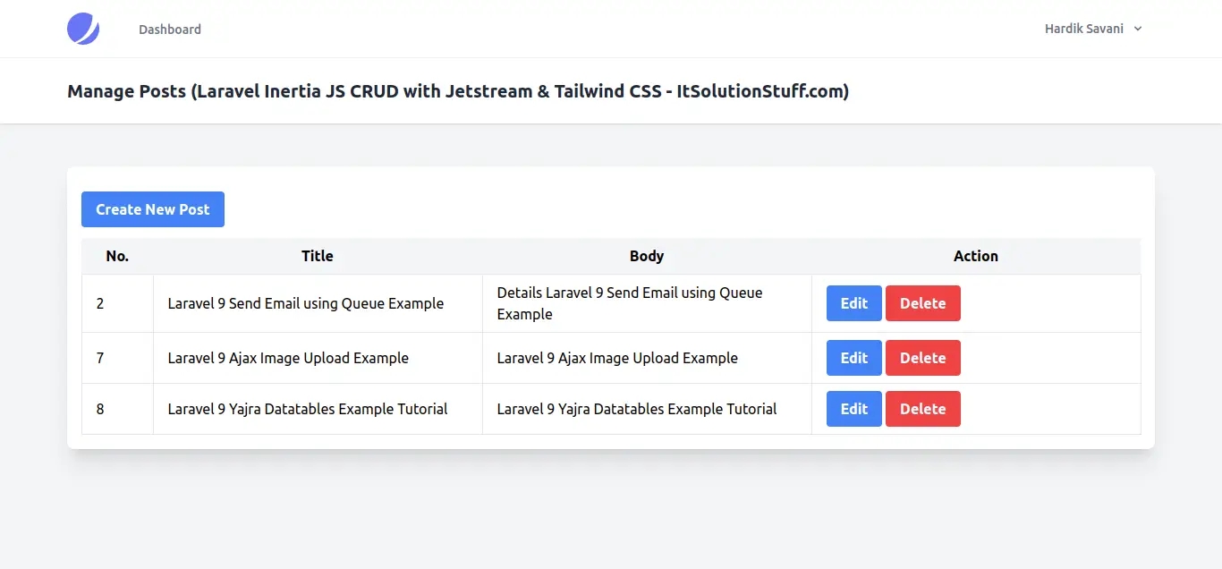 Laravel 9 Inertia JS CRUD with Jetstream & Tailwind CSS