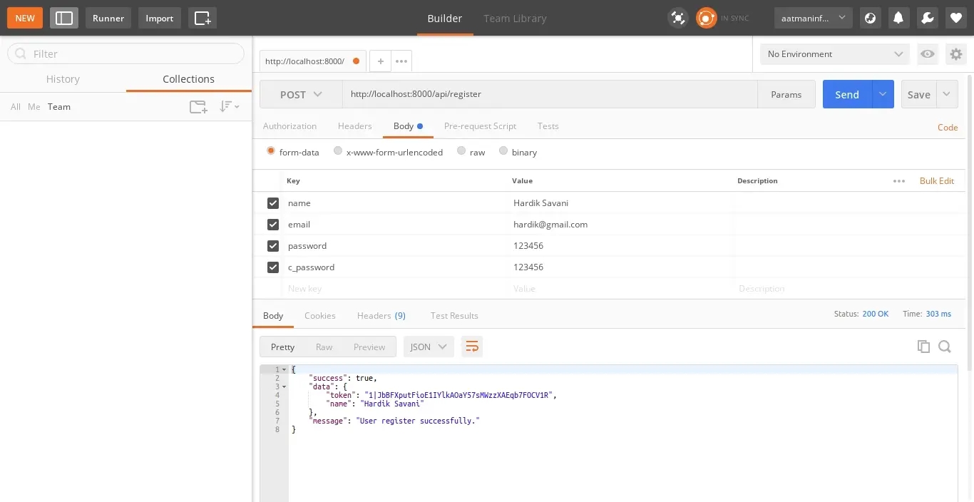 1) Register API: Verb:GET, URL:http://localhost:8000/api/register