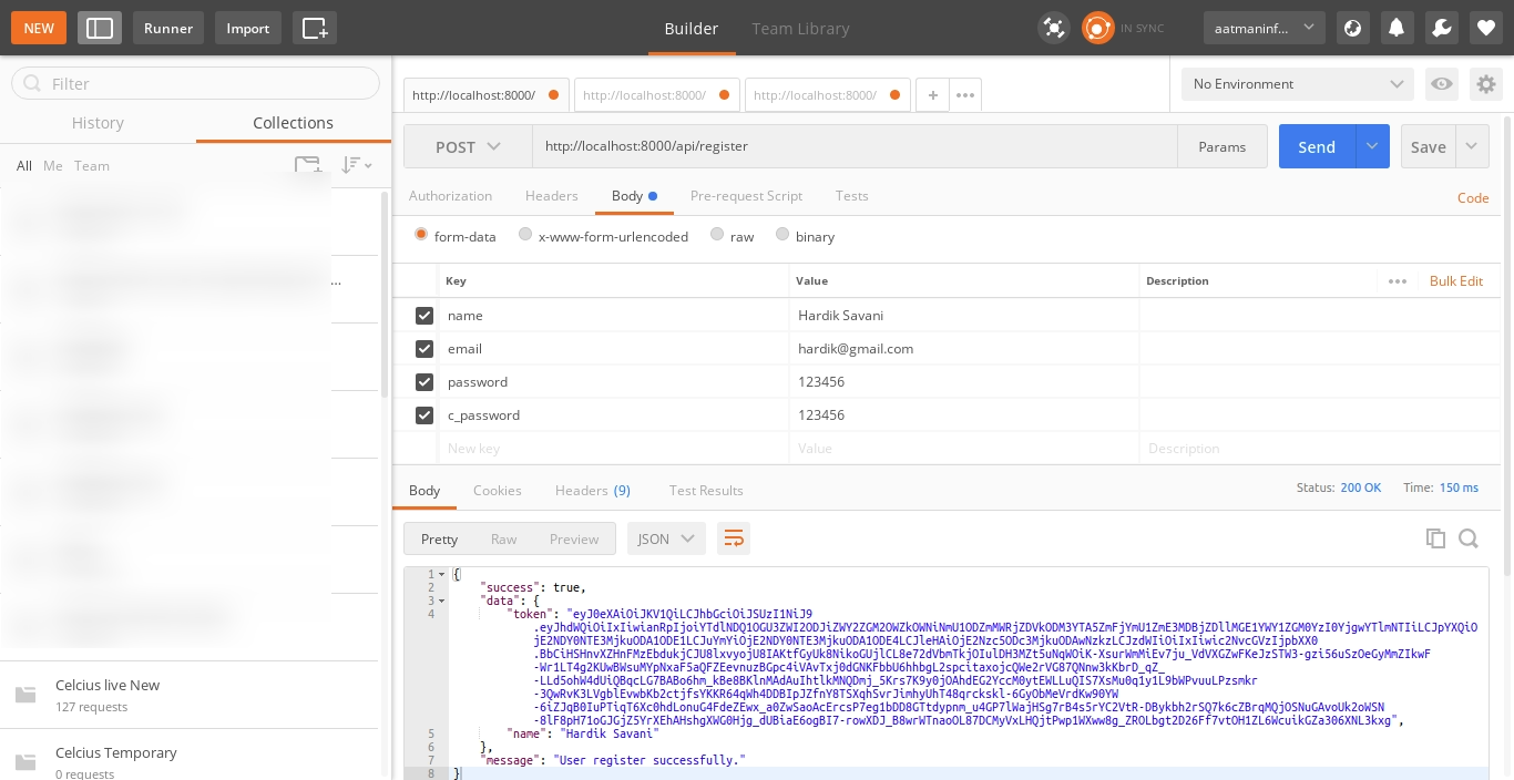 1) Register API: Verb:GET, URL:http://localhost:8000/api/register
