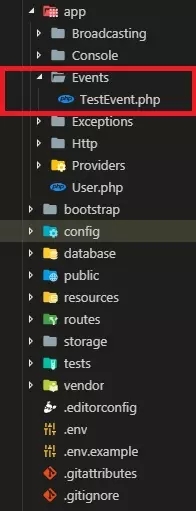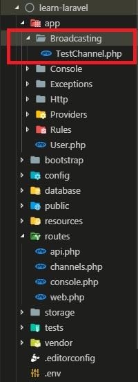 Kể từ phần này trở đi, các thư mục mặc định không xuất hiện trong thư mục app mà chỉ được khởi tạo bằng lệnh như Broadcasting.
