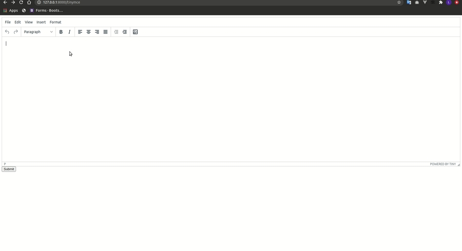 });Giao diện của tinymce sau khi tích hợp vào textarea.