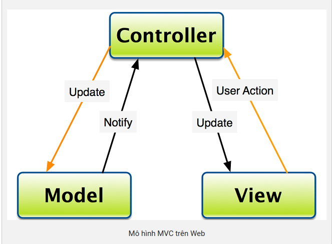 Chắc hẳn ai bắt đầu với sự nghiệp làm web cũng không thể không biết mô hình MVC. Mình sẽ nói sơ lược lại một chút nhé. MVC(Model- View- Controller) là mô hình phân chia application thành 3 thành phần chính và mỗi thành phần lại có nhiệm vụ riêng của nó: