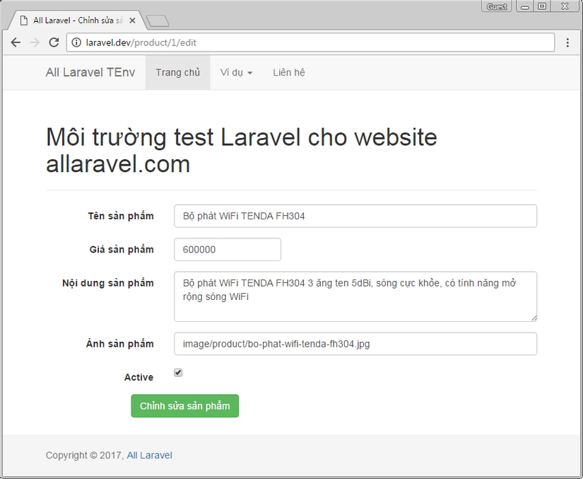 @endsectionBước 12 : Phương thức update() của ProductController đảm nhận phần cập nhật nội dung sản phẩm.