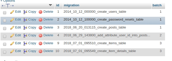 Các bạn chú ý đến column batch, cột này chúng ta có thể hiểu là migrations tạo ở lượt mấy, ví dụ như bảng migrations ở trên 3 migration có id 1 2 3 được migrate ở lần 1, migration có id = 4 được migrate ở lần 2,...