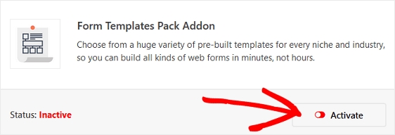 Next, you’ll need to install and activate the Form Templates Pack Addon.