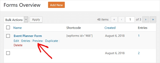 If you haven’t embedded your form onto your site, you can perform a test entry from the WPForms preview page for that particular form.
