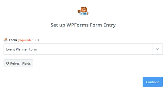 After connecting to your WPForms account, choose the form you just created from the dropdown menu. Click Continue.