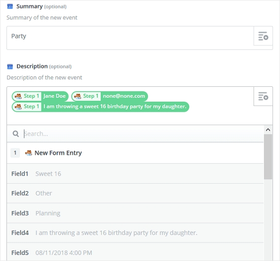 When you like how your form submission looks in Google Calendar, go back to your Zapier account, click Finish, and name your zap on the next screen for your reference.
