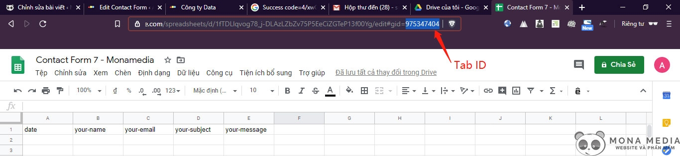 Cách lấy Sheet ID và Tab ID của trang tính Google.